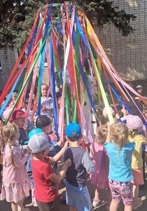 Троица - один из самых почитаемых летних праздников. Накануне Троицы в нашем детском саду устроили фольклорный праздник, в котором приняли активное участие и наши ребята. Дети узнали, что символом праздника считается березка, которая дает здоровье и благополучие, помогает новому урожаю, что на Троицу дома и храмы украшали зелёными ветвями берёзы, другими растениями и цветами, полы укрывали чабрецом.